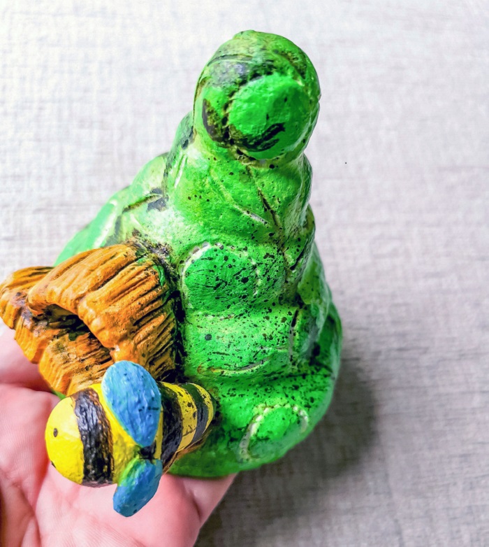Now, make the roof which looks like beehive. Create any shape you like, stamp it with anything to create texture and design on the roof. And, add a cute bee figurine.